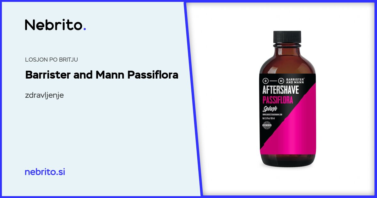 Losjon za nego po britju iz omejene izdaje kolekcije Barrister in Mann Passiflora. Losjon po britju pomirja in razkužuje kožo, zdravi ureznine in preprečuje srbenje. Diši izvrstno in nepretenciozno.