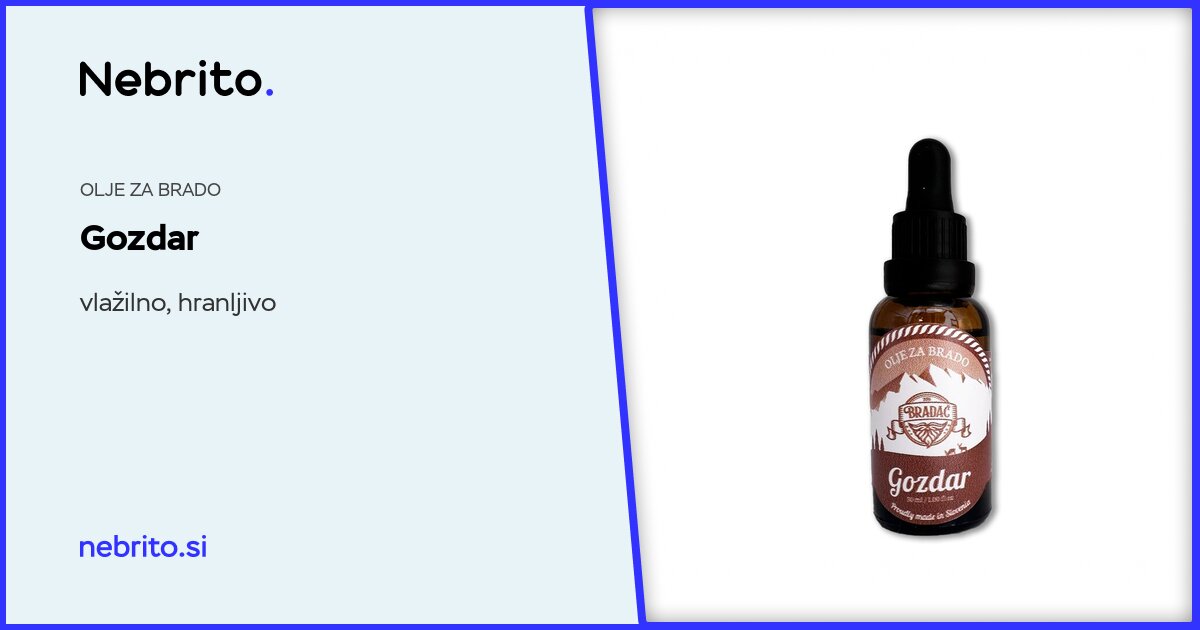 Izdelek vsebuje olje grozdnih pečk in jojobino olje. Ne skrbita le za brado, temveč tudi za kožo pod njo, saj preprečujeta izsušitev in luščenje.