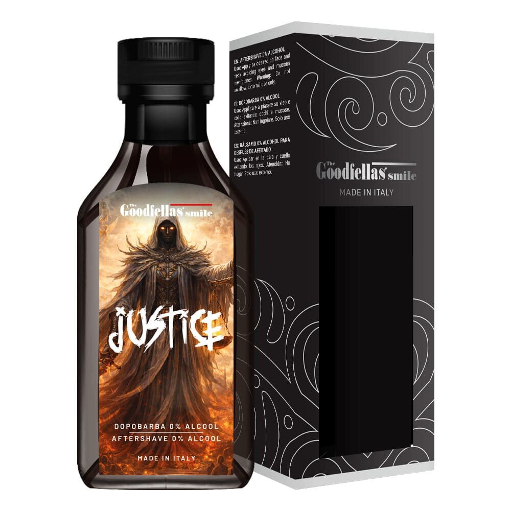 Dišava Justice se razvija postopno: v uvodu so rožnati poper, mandarina in bergamotka, v srcu lila, breskev, geranija, jasmin in črni ribez, v osnovi pačuli, ambra, mošus in vanilja. Skupni značaj je jantarno-cvetličen z citrusno-začimbnim odprtjem.