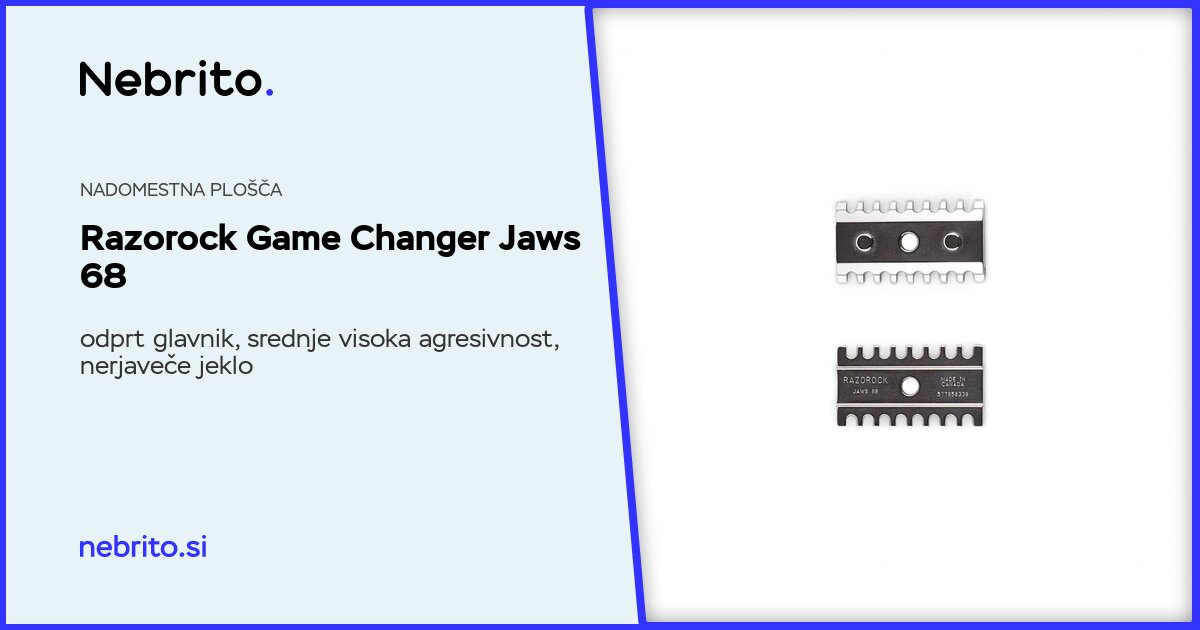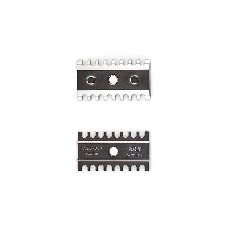 Jaws 68 je nadomestna plošča za namestitev v napravo Razorock Game Changer. Odprt greben, zračnost 0,68 mm. Zobje so v širokem razmaku, kar omogoča, da dolge ščetine zlahka gredo skozi.